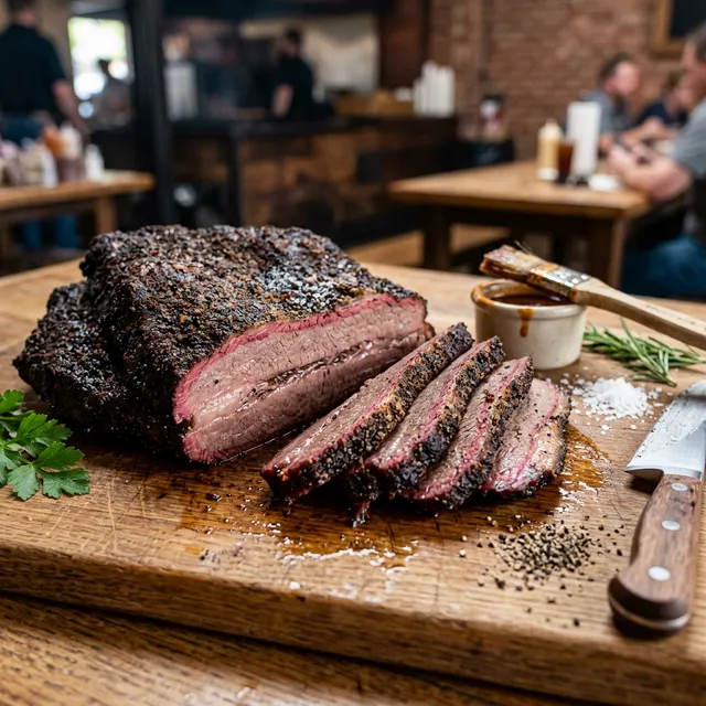 Die saftigen Brisket-Scheiben mit kräftiger BBQ-Sauce servieren.