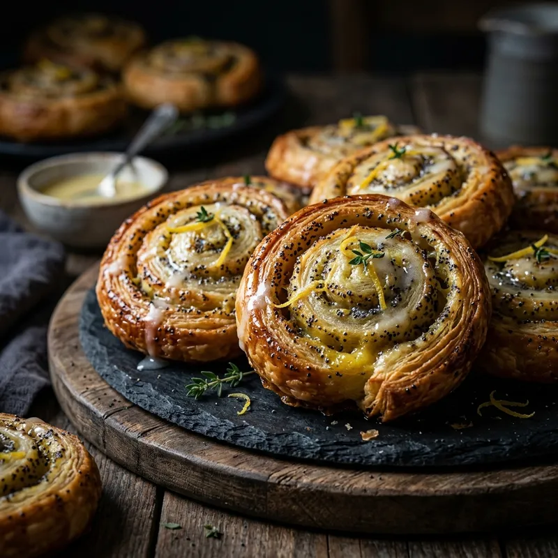 Mohnfüllung mit 1 EL Zitronensaft und etwas Zitronenabrieb verrühren. Gleichmäßig auf dem Blätterteig verstreichen, dabei einen kleinen Rand freilassen.