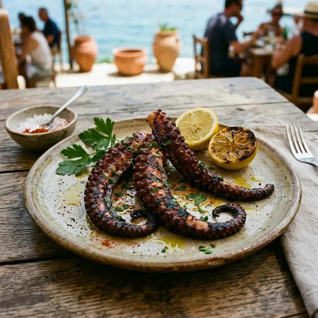 Die Arme grillen, bis die Saugnäpfe schwarze Ränder bekommen und knusprig abstehen. Mit frischem Zitronensaft, etwas Olivenöl und grobem Meersalz direkt vom heißen Rost servieren.