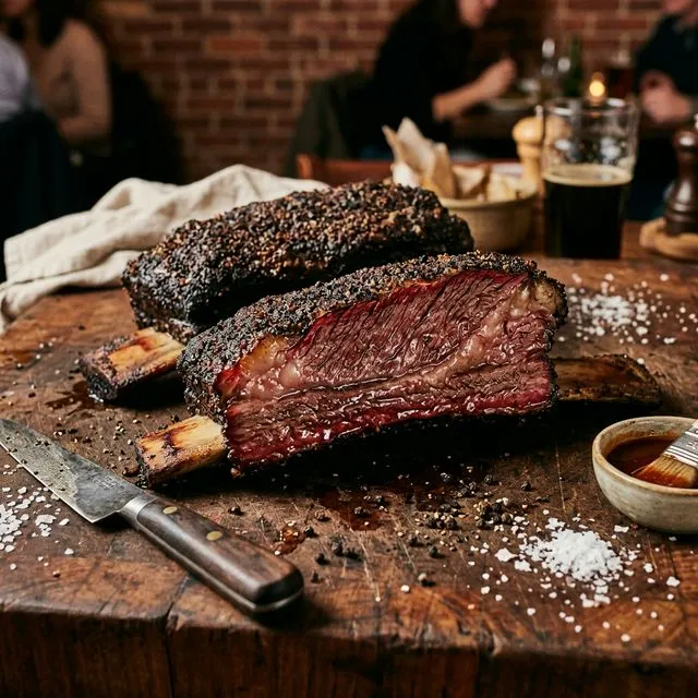 Nerd-Fact: Unter den BBQ-Profis als 'Brisket am Stiel' bekannt. Rinderrippen besitzen den massivsten Fettanteil überhaupt (Marmorierung) – das intramuskuläre Fett zerschmilzt bei langer Hitze und badet die Faserbündel in Feuchtigkeit.