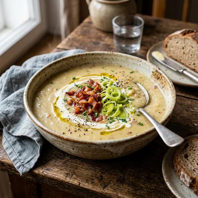 Kartoffelcremesuppe mit Lauch & Speck