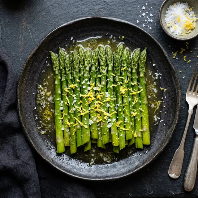 Spargel aus dem Beutel nehmen. Er ist sofort servierfertig! Wenn gewünscht, kurz in einer extrem heißen Pfanne für 30 Sekunden anrösten für leichte Röstaromen. Mit Zitronenabrieb und Salz servieren.