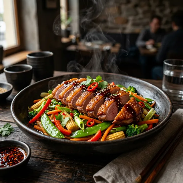 Knusprige Ente auf Wok-Gemüse